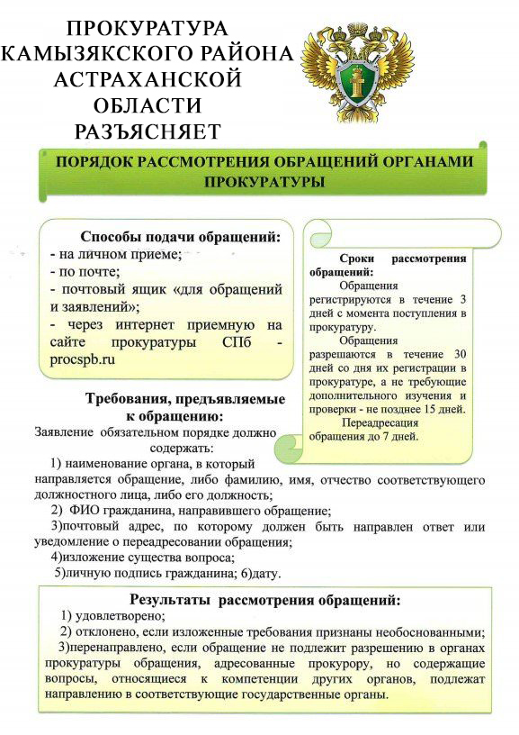 ПРОКУРАТУРА КАМЫЗЯКСКОГО РАЙОНА АСТРАХАНСКОЙ ОБЛАСТИ РАЗЪЯСНЯЕТ